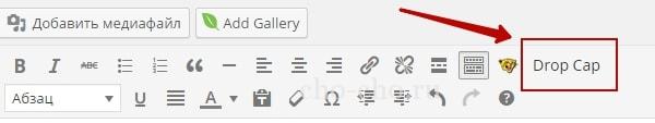 Вивести буквицю в тексті статті досить легко. Подивіться: в редакторі з’являється нова кнопка.