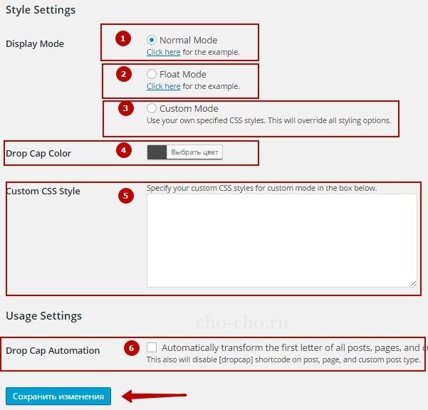 6. Drop Cap Automation — Якщо ви встановіть галочку в цьому розділі, то буквиця зміниться у всіх абзацах вашої статті. Таке оформлення вважається не самим вдалим, але спробувати можна. Якщо цю функцію не активувати, то змін не буде. Також ви можете вручну ставити буквицю в будь-яке слово завдяки такому шорткоду: