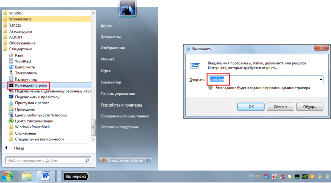 – Через «Пуск» знаходимо «Командний рядок». Зробити це можна за допомогою клавіш Win+R.