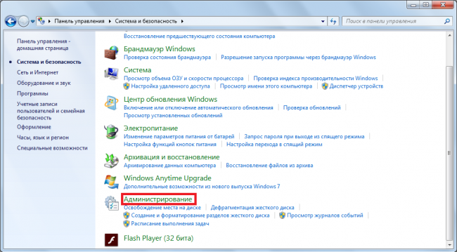 – Шукайте у вікні пункт «Безпека та система», а далі перейдіть у вікно «Адміністрування».