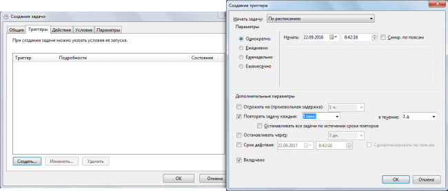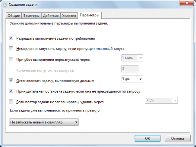 – «Параметри» можна налаштувати завдання, створити умови для її відключення і багато іншого.