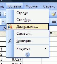 Наступний етап передбачає створення графіка. Щоб зробити графік, потрібно спочатку перейти у вкладку «Меню», потім вибрати «Вставка», і перейти до пункту меню «Діаграма». Це все показано нижче на малюнку.