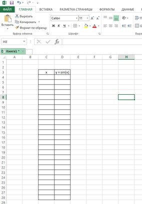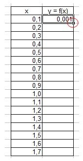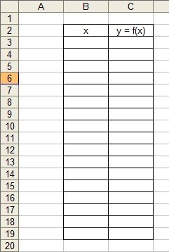 – Перед початком побудови необхідно відкрити новий документ, створити чистий аркуш, і зробити два стовпчики. В одному ви будете записувати аргументи, а інший буде поміщена сама функція. Це все можна побачити на зображенні.