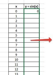 Наступний етап передбачає введення нових значень. Крім всього іншого потрібно буде ввести формулу, не забуваючи про те, що необхідно почати зі знака одно. Наприклад, =SIN(C4).