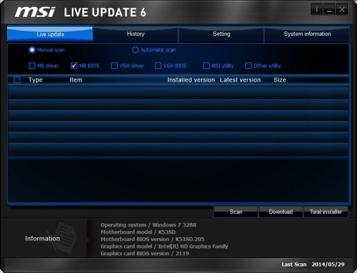Плати оновлюються за допомогою програми MSI Live Update, вона автоматично визначить необхідні версію Біоса і завантажить їх з мережі. Утиліта може бути завантажена на сайті Micro-Star International.