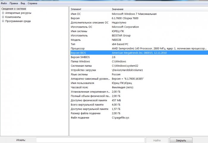 Серед переліку інформації може бути знайдений навіть виробник материнської плати, модель цієї плати і версія Біоса.