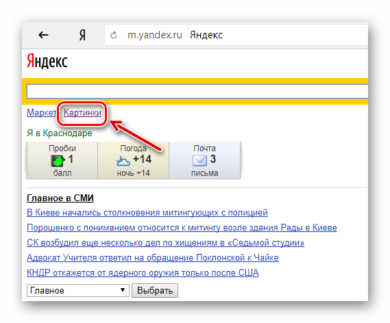 Вибираємо вкладку «Картинки» для переходу на сервіс пошуку схожих зображень «Яндекс.Картинки».