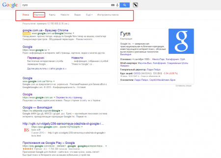 Пошук по картинках в Google. Для початку входимо в пошуковик google.com. Зверху бачимо підменю, одне з них Картинки.