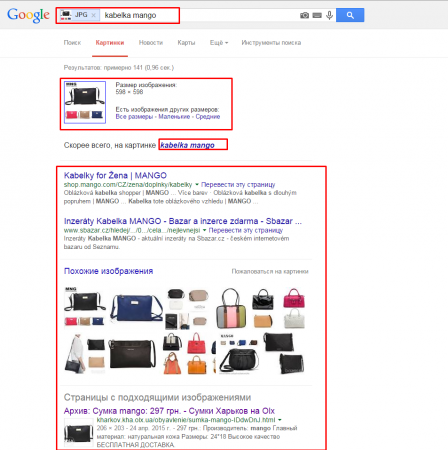 Мене дівчина попросила знайти сумку яку вона знайшла в зображення, але не знає де її купити. Через даний спосіб можна легко це зробити. Вибираю завантажити фото з комп’ютера і натискаю знайти, через секунду я бачу назви даної сумки і варіанти де її можна купити.