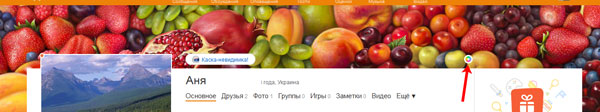 Щоб зробити таке ж оформлення та для свого профілю, відкрийте головну сторінку цього користувача, і вгорі над стрічкою з правого боку знайдіть райдужний кружечок.