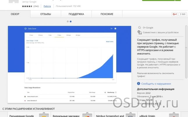 Є швидкість підключення до Інтернету повільна, це розширення від Google допоможе скоротити витрату трафіку за рахунок стиснення сторінок серверами компанії перед скачуванням користувачем. При використанні зашифрованого з’єднання HTTPS або режиму Incognito вкладки не будуть оптимізовані і не будуть видні для Google.