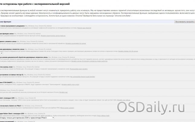 Усього доступно більше сотні експериментальних функцій, вони постійно додаються і видаляються в процесі тестування. Щоб функції запрацювали, потрібно перезапустити браузер.