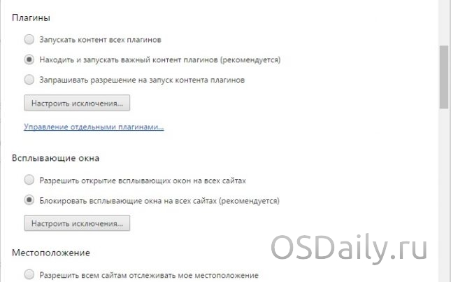 Переконайтеся, що в розділі chrome://plugins не обрана опція «Запускати завжди», оскільки вона є пріоритетною. Тут же можна відключити або видалити непотрібні плагіни.