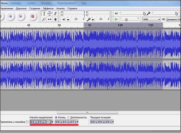 • Після відкриття пісні позначаємо початок і кінець необхідного нам відрізка (зокрема, вказавши внизу час початку і кінця уривка).