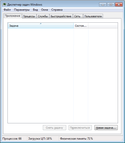 Таким був диспетчер завдань, коли він запускався без верхньої панелі.