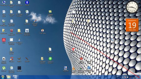 Використовуючи кнопку «Згорнути всі вікна». Хоча вона мало схожа на кнопку, адже на неї не потрібно навіть натискати, щоб швидко потрапити на робочий стіл – достатньо просто навести курсор миші. Знаходиться ця кнопка на панелі завдань у правому боці і являє собою невеликий прямокутник. На рисунку нижче показано її зовнішній вигляд та місце розташування.