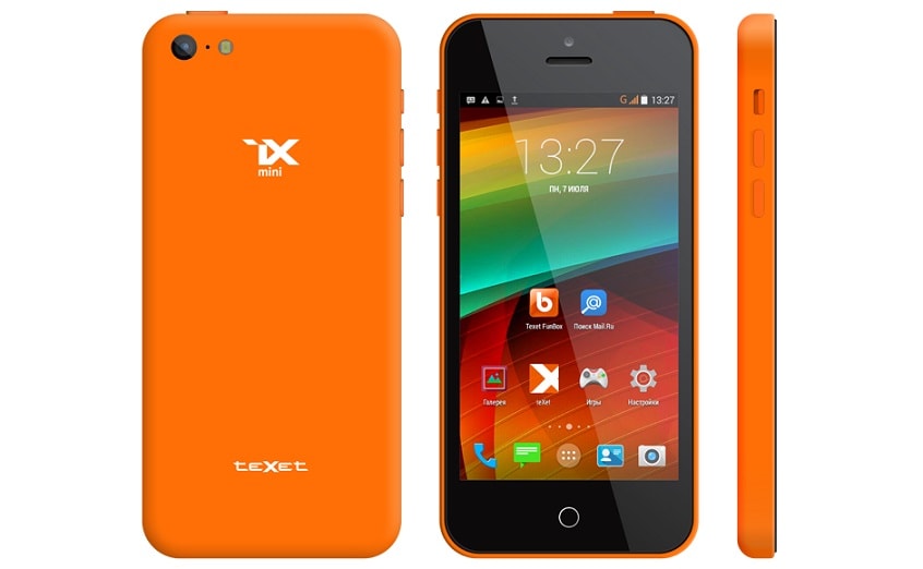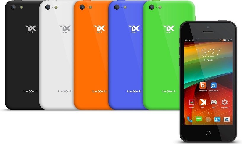 Смартфон Texet iX-mini TM-4182 — по суті, є копією iPhone 5C (репліка), і фактично повторює його дизайн. Відразу впадає у вічі головна відмінність у зовнішності — центральна сенсорна кнопка управління замість фізичного у Айфона. І вона тут не просто центральна, вона єдина на передній панелі і виконує функції всіх трьох звичних кнопок. Оригінальне рішення, але не дуже зручне, звикати доведеться довго. Якість збірки і матеріали корпусу на хорошому рівні. Апарат розрахований тільки на одну сім-карту, причому, формату nano-sim. Операційна система — Android 4.4.2. Екран з IPS матрицею тут, безсумнівно, кращий з усіх розглянутих нами апаратів.