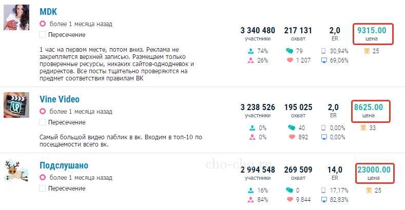 Виняток — універсальні групи, де аудиторія досить різноманітна. Можна стати передплатником цієї групи і звернутися до її адміністраторам. Найчастіше в якості контактних даних використовують адресу електронної пошти або сторінку у Вконтакті. Не потрібно думати, що це перше звернення. Вже давно кожен адміністратор створив розцінки. У рідкісних випадках можна поторгуватися. Однак, йому простіше співпрацювати з тим замовником, який згоден платити зазначену вартість, так як попит дозволяє це робити.