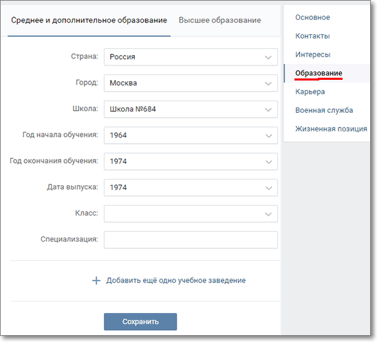 Щоб вас могли знайти однокласники, і ви їх, теж, вкажіть школу, в якій навчалися (рис.5). Для