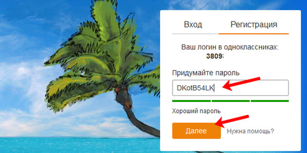 Придумайте складний пароль: довжина не менше 8 символів, з цифрами, великими і маленькими літерами. Внизу повинна з’явитися напис «Хороший пароль». Натисніть «Далі».