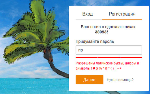 Реєстрація на сайті Однокласники