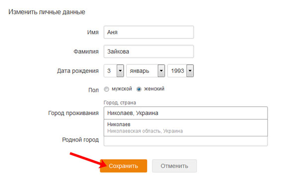 Налаштування основних даних профілю в Однокласниках