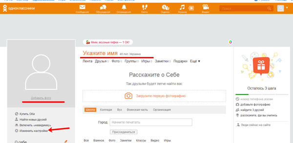 - 3 Налаштування основних даних профілю в Однокласниках