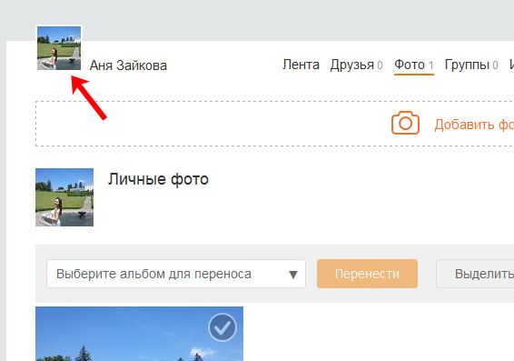 Щоб додати свою фотографію на сторінку, клацніть по заначку аватарки в лівому верхньому кутку.