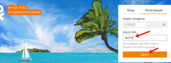 На вказаний номер, прийде код, введіть його в поле Код з sms» і натисніть «Далі». За отримане sms з вас ніяка плата не буде братися. Весь процес реєстрації в Однокласниках абсолютно безкоштовний.