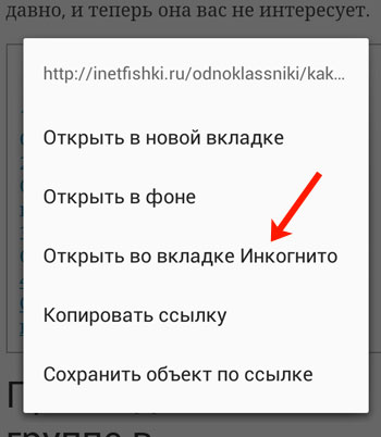 Якщо Ви переглядаєте сайт у звичайному режимі і, клікнувши на посилання, хочете перейти на іншу сторінку анонімно, тоді натисніть на посилання правою кнопкою мишки і виберіть з меню «Відкрити посилання в режимі Інкогніто».