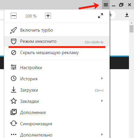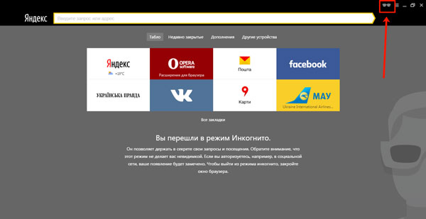 Тепер давайте розглянемо, як зайти на сайт в Яндекс браузер в режимі інкогніто.