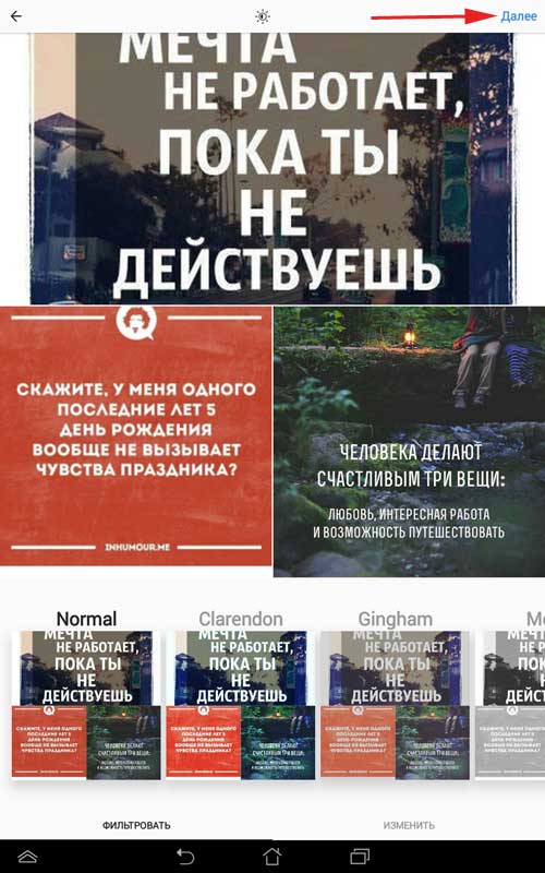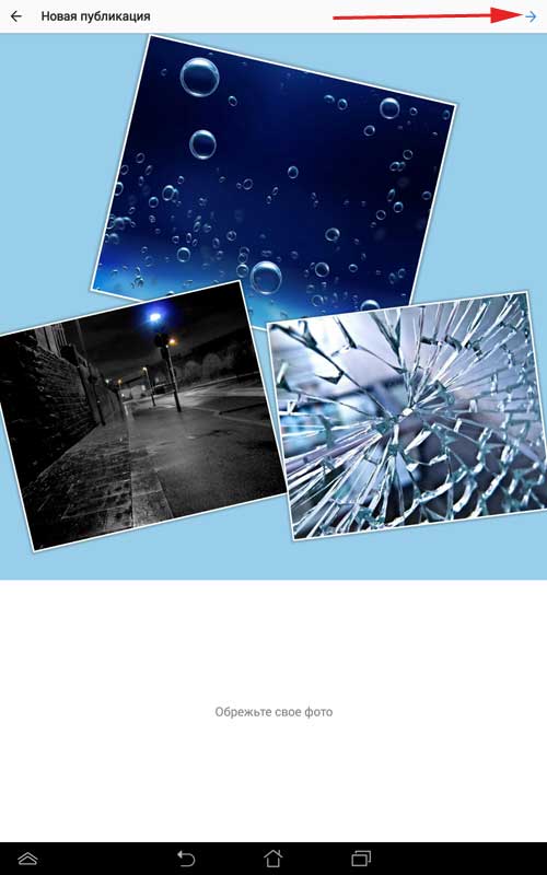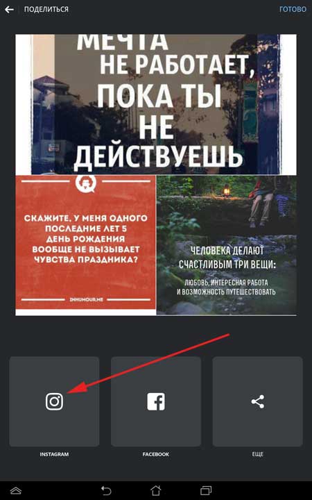 На наступному етапі натискаємо на значок Инстаграма, щоб почати постити цей колаж саме там.