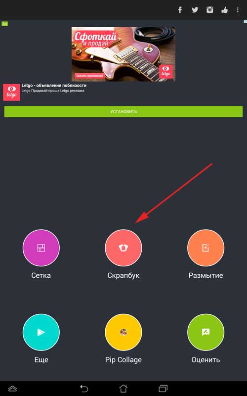 Запускаємо програму. На першому етапі нам необхідно вибрати вид колажу. Я вибираю «Скрапбук»: