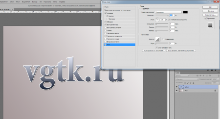 Також до тексту можна застосувати те ж що застосовують до будь верствам. Переходимо в розділ Шари і на шар з текстом натискаємо 2 рази. Відкривається вікно налаштувань і функцій.
