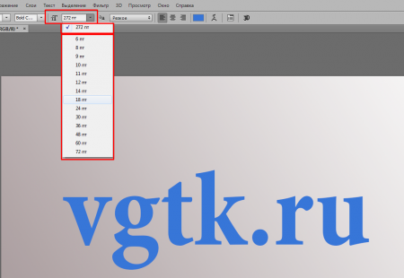 Розмір тексту трохи левей від кольору, ви можете відкрити стандартні розміри тексту або просто вписати в ручну розмір в пікселях.