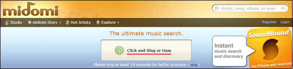 Мережевий сервіс «Midomi» — один з найбільш популярних мережевих сервісів англомовного сегменту. Це не тільки інструмент для розпізнавання музики, а й спільнота спілкуються між собою користувачів.