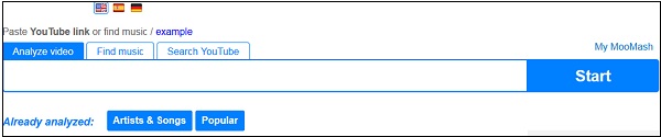 Сервіс «Moomash» дозволить вам дізнатися музику в режимі онлайн, яка є відео на Ютуб. Просто перейдіть на даний сервіс, скопіюйте посилання з Youtube-ролика у відповідне вікно, а потім натисніть на кнопку «Start».