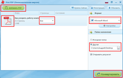 - Швидко працює з перетворенням PDF-документів в DOC і назад.