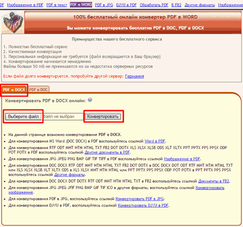 Якщо ми говоримо про сервіс на сайті pdftoword.ru, то тут все просто.