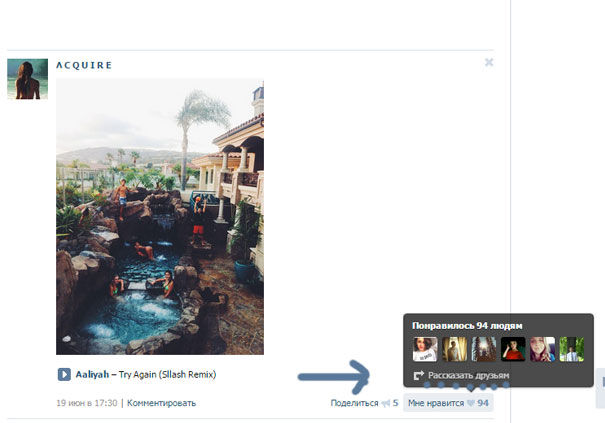 Над кожним постом обов’язково є позначка «Мені подобається» і «Поділитися». Якщо при перегляді пабліка або сторінки будь-якого користувача Вам дуже сподобалася запис, ви в ВК можете натиснути «Мені подобається», за це не буде вважатися репостом, це буде називати «лайкнув» по термінології блогерів. А ось якщо натиснути «Поділитися», то це інформація обов’язково висвітиться вже на вашій сторінці з посиланням на першоджерело, це і буде репост.