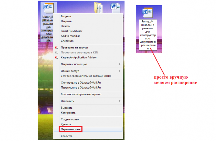 2. Змінити вручну розширення файлу на необхідне. Звичайно ж, цей варіант виявиться корисним лише тоді, коли ви знаєте дійсне розширення змінюваного файлу.