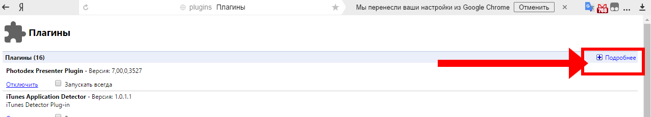 - Зі списку модулів, знайдіть розділ «Adobe Flash Player», але перш, натисніть на посилання «Докладніше» .