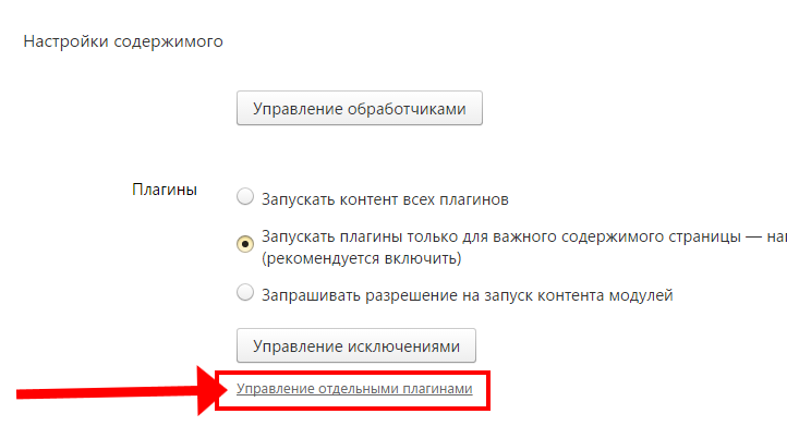- В опціональному меню «Плагіни» потрібно активувати посилання «Управління окремими…».