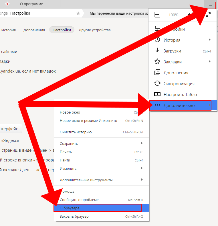 Для того щоб справити, так званий, програмний апгрейд вашого браузера необхідно натиснути на кнопку «Налаштування…» і далі перейти в розділ «Про браузері», за допомогою активації пункту «Додатково».