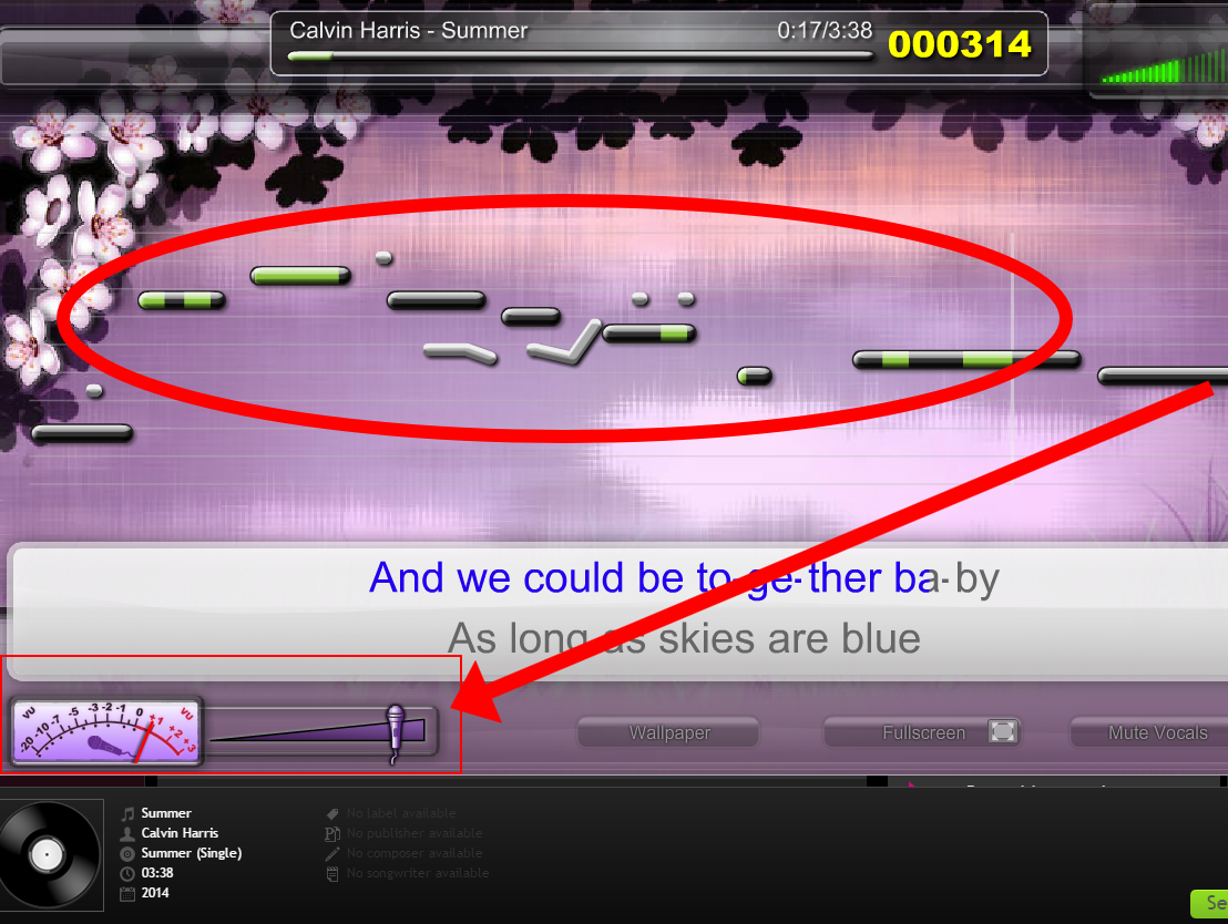 Виберіть вподобану пісню з представленого списку і спробуйте заспівати — у підсумку, програма вас оцінить! Так, і про приємне WEB-додатку: активуйте відповідний ярлик (ідентифікатор соціальної мережі), і ваш результат стане відомий у колах ваших друзів!