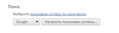 Робиться це все на тій же сторінці «Налаштування», в розділі «Пошук» зі списку вибираємо бажану пошукову систему. Якщо не знайшли для себе нічого підходящого, то додати пошуковик завжди можна, натиснувши на кнопочку «Налаштувати пошукові системи…»: