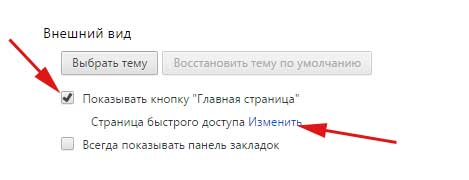 Тут же на сторінці налаштувань переходимо в розділ «Зовнішній вигляд» і ставимо галочку біля пункту «Показувати кнопку Головна сторінка».