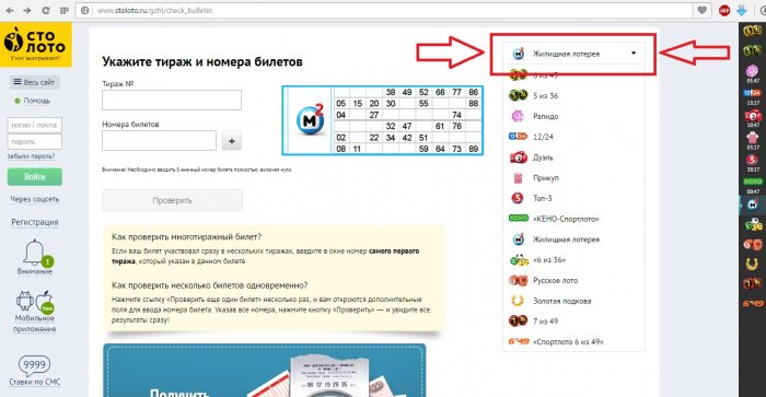 Є спрощений метод – переходимо на сторінку перевірки безпосередньо: http://www.stoloto.ru/gzhl/check_bulletin, вибравши необхідну лотерею, робимо все, що нам запропонують, не заходячи на головну сторінку.