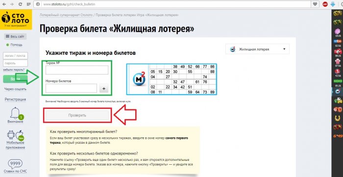 Отже, лотерейний супермаркет має своїм офіційним сайтом: stoloto.ru. Для перевірки виграшу за своїм унікальним номером, необхідно натиснути на певний пункт, перейшовши на сайт, а після ввести свій індивідуальний номер і тираж.