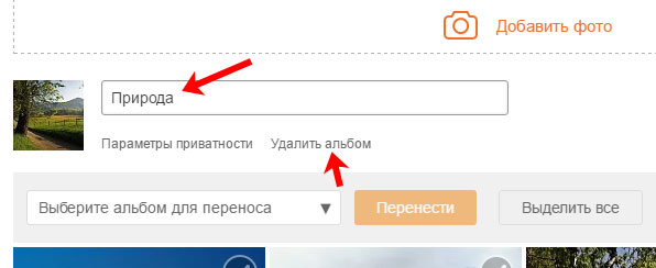 Думаю, у вас вийшло додати новий альбом на свою сторінку в Однокласниках. Ви також знаєте, як його назвати і перейменувати, додати, видалити і перенести в нього потрібні фотографії.